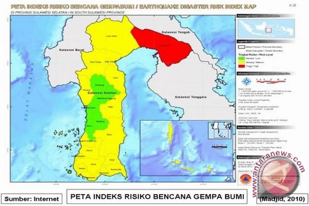 "Pusat gempa di 82 kilometer tenggara Luwu Timur, Sulawesi Selatan, dengan kedalaman 10 kilometer," kata Kepala Pusat Data dan Informasi BNPB Sutopo Purwo Nugroho di Jakarta, Senin.