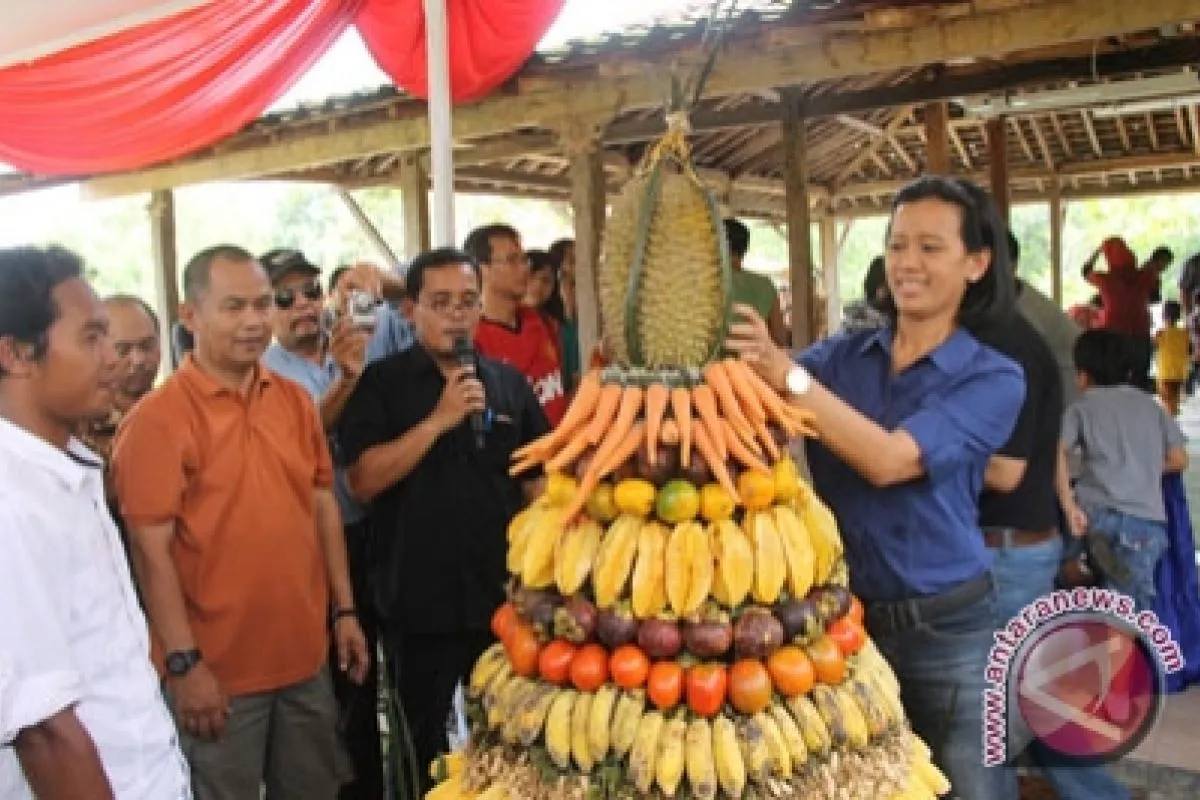 Setelah meniup lilin, dan memotong kue, GKR Pembayun yang didampingi suami, KPH Wironegoro, meletakkan buah durian di atas gunungan besar tersebut.