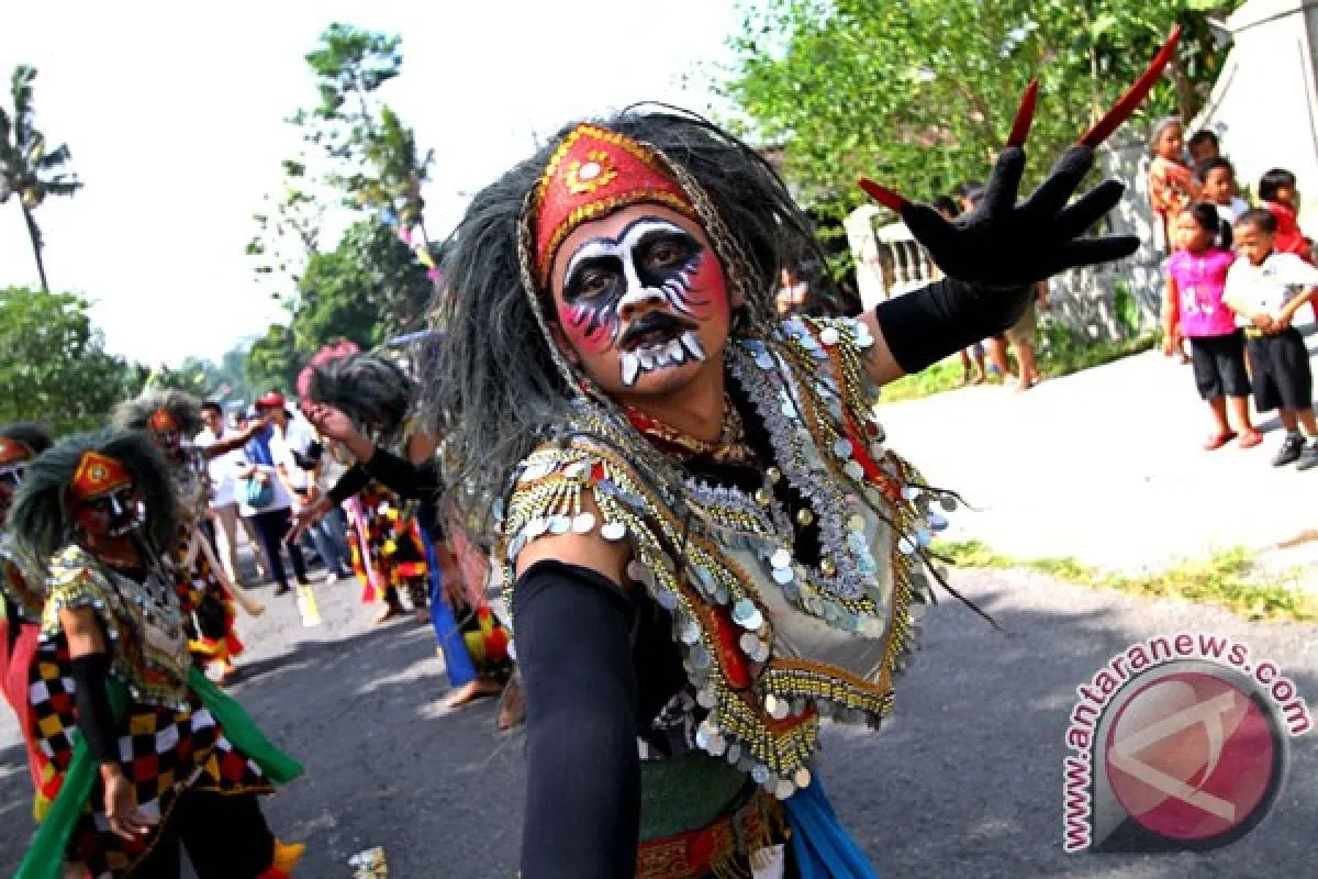 YOGYAKARTA - Sejumlah penari reog unjuk kebolehan membawakan tarian Reog Boyolali di Desa Jelok, Cepogo, Boyolali, Jawa Tengah, Kamis (14/6). Tarian Reog Boyolali tercipta pada waktu jaman penjajahan kolonial Belanda, karena digunakan untuk melatih fisik dan juga mendidik berperang generasi muda secara sembunyi-sembunyi, salah satunya dikemas dalam bentuk tarian. FOTO ANTARA/Noveradika/12