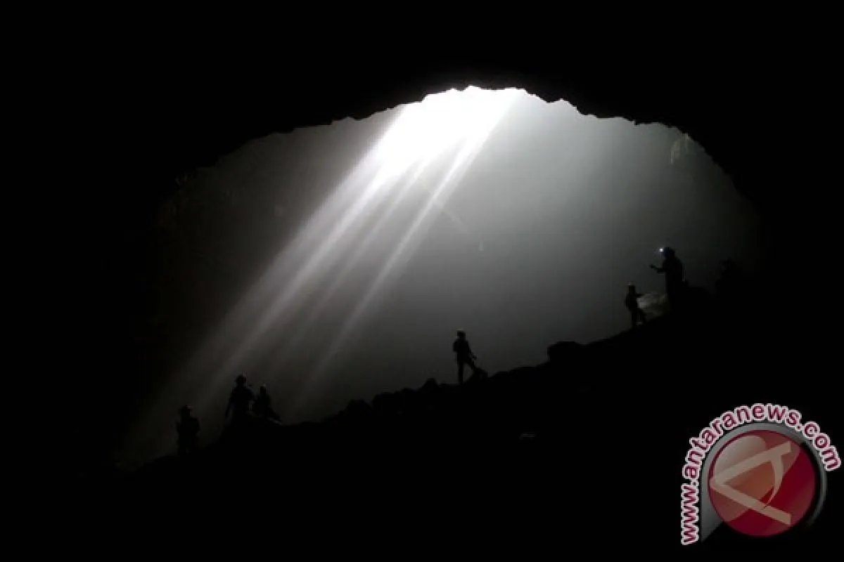 YOGYAKARTA - Sejumlah penelusur gua (caver) menikmati keindahan cahaya surga di Luweng (goa vertikal) Grubug sedalam 90 meter, Dusun Jetis Wetan, Pacarejo, Semanu, Gunung Kidul, Yogyakarta, Rabu (20/6). Goa yang termasuk kawasan Karst pegunungan Sewu tersebut memiliki kisah sejarah pada zaman Pemberontakan PKI, digunakan untuk eksekusi dengan dilempar hidup2 kedalam Goa setinggi 90 meter, dan kini Goa Grubug dibuka untuk umum dengan menawarkan ekowisata dan petualangan yang terdiri dari hutan purba, gua vertikal Luweng Jomblang sedalam 60 meter, Luweng Grubug sedalam 90 meter, gua horisontal sejauh 300 meter, serta sungai bawah tanah. FOTO ANTARA/Noveradika/12