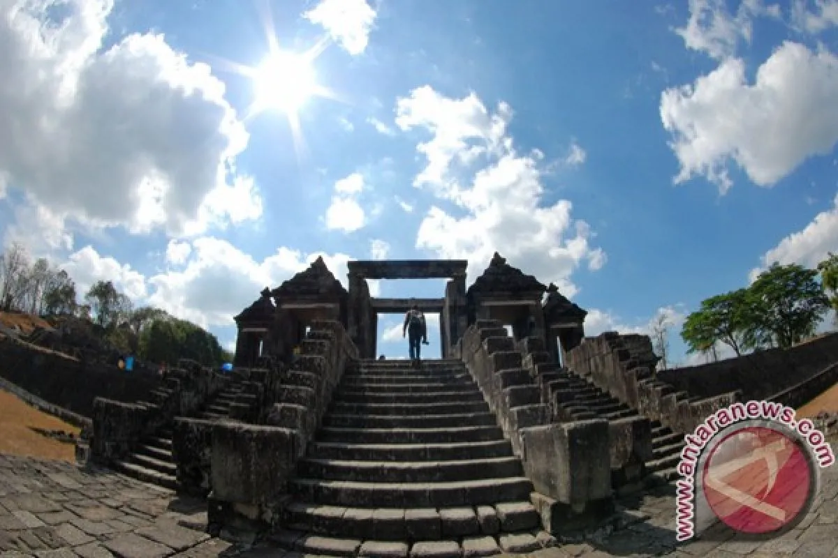 YOGYAKARTA - Seorang wisatawan menyaksikan arsitektur Situs Candi Ratu Boko, Sleman, Yogyakarta, Sabtu (25/8). Situs arkeologi berupa keraton Kerajaan Mataram Kuno dari abad ke-8 tersebut merupakan salah satu destinasi wisata sejarah adalan kota Yogyakarta. FOTO ANTARA/Andreas Fitri Atmoko/nov/12