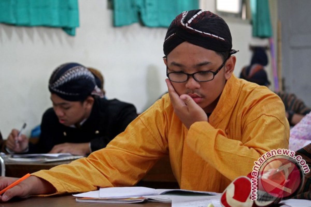 Siswa melakukan Kegiata Belajar Mengajar (KBM) dengan mengenakan busana daerah di SMP N 9 Yogyakarta, Kamis (25/9). Setiap hari kamis pahing dalam penanggalan Jawa, para pelajar di Kota Yogyakarta diwajibkan untuk memakai busana daerah secara bertahap guna mendukung keistimewaan Daerah Istimewa Yogyakarta (DIY). ANTARA FOTO/Noveradika/14