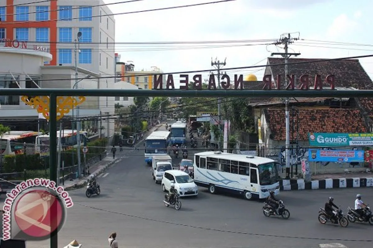 Sejumlah bus pariwisata mulai berdatangan menuju area parkir ngabean Notoprajan, Ngampilan, Yogyakarta. Senin (1/6). Meskipun puncak musim liburan sekolah masih sebulan lagi peningkatan jumlah wisatawan yang berkunjung ke yogyakarta mulai terasa. (Foto Antara/Prasetya Nandi Wardhana/ags/15)
