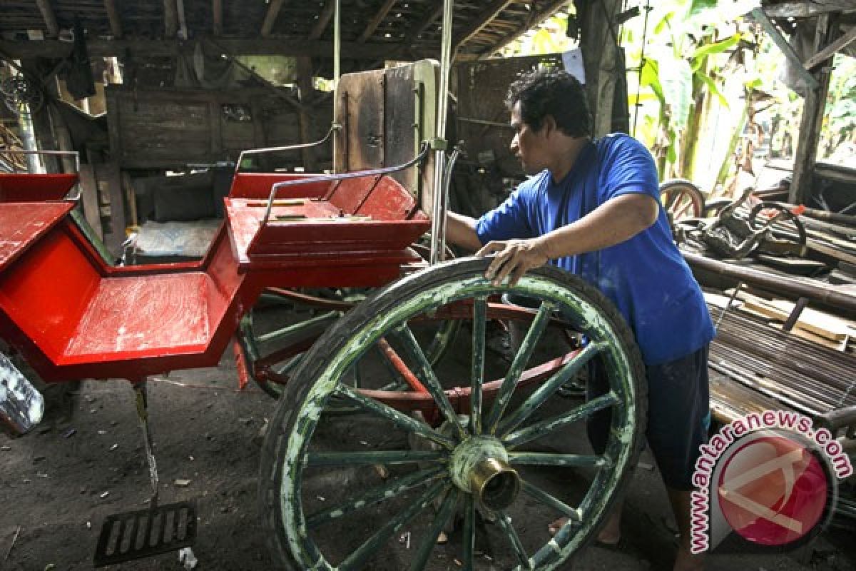 Jiyono membersihkan kerangka andong di bengkel andong Punakawan, Desa Patalan, Jetis, Bantul, DI Yogyakarta, Rabu (25/5) Bengkel andong atau kereta kuda yang menyediakan jasa perbaikan andong dan pembuatan andong dengan harga Rp 30 - 80 juta per unit