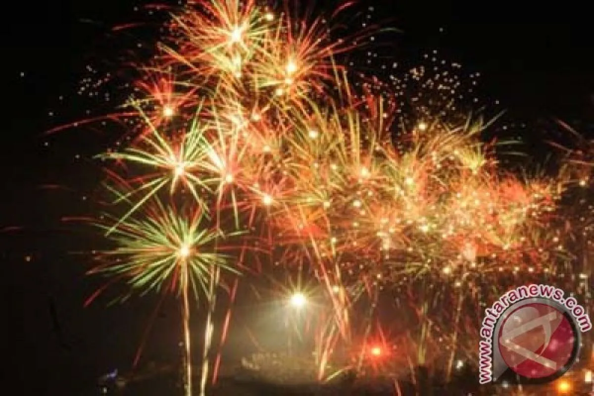 Ribuan warga bersorak-sorai menyaksikan puncak pesta kembang api yang berlangsung sekitar 10 menit itu.