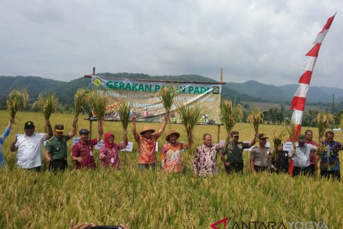 Kulon Progo (Antara Jogja) - Kepala Badan Penyuluhan dan Pengembangan Sumber Daya Manusia Pertanian Kementerian Pertanian Momon Rusmono melakukan gerakan panen padi seluas 25 hektare di Desa Jatisarono, Kabupaten Kulon Progo, Daerah Istimewa Yogyakarta.