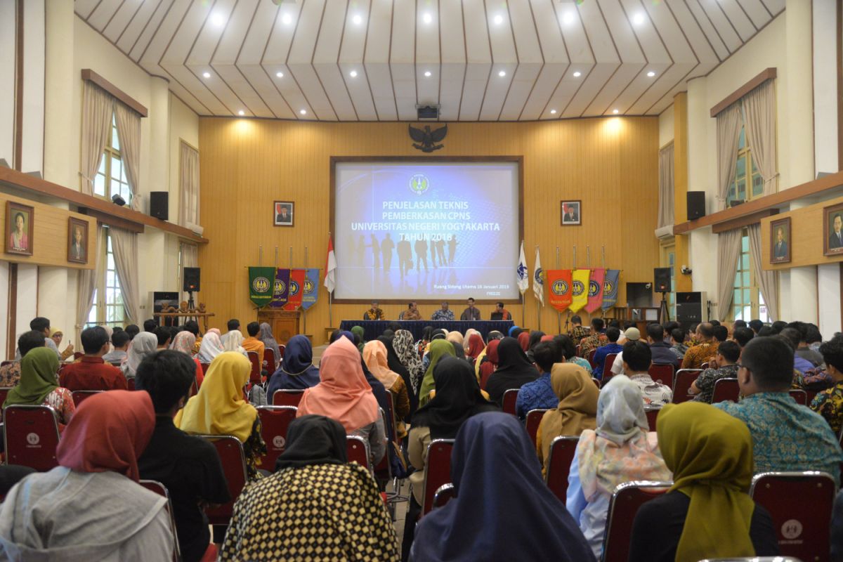 Sebanyak 145 peserta penjelasan teknis pemberkasan CPNS dosen UNY tahun 2018 itu terdiri atas 10 orang bergelar doktor dan 135 orang bergelar master. Para calon dosen tersebut lulus berdasarkan pengumuman Kemristekdikti Nomor B/17/A.A2/KP/.02.01/2019.