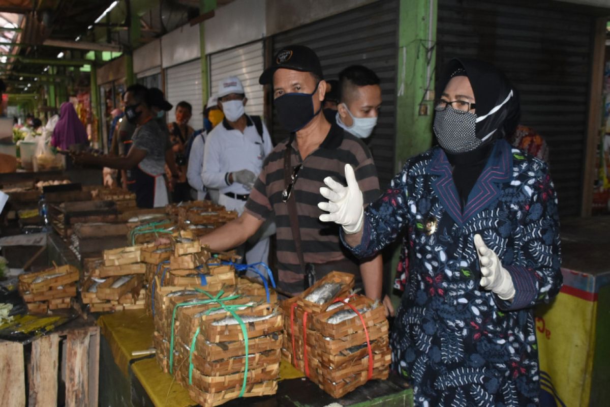 Pada kesempatan edukasi terhadap masyarakat terkait dengan prosedur pencegahan penularan COVID-19 di Pasar Sambilegi tersebut, Wakil Bupati Sleman Sri Muslimatun juga membagi-bagikan masker kepada pengunjung pasar.