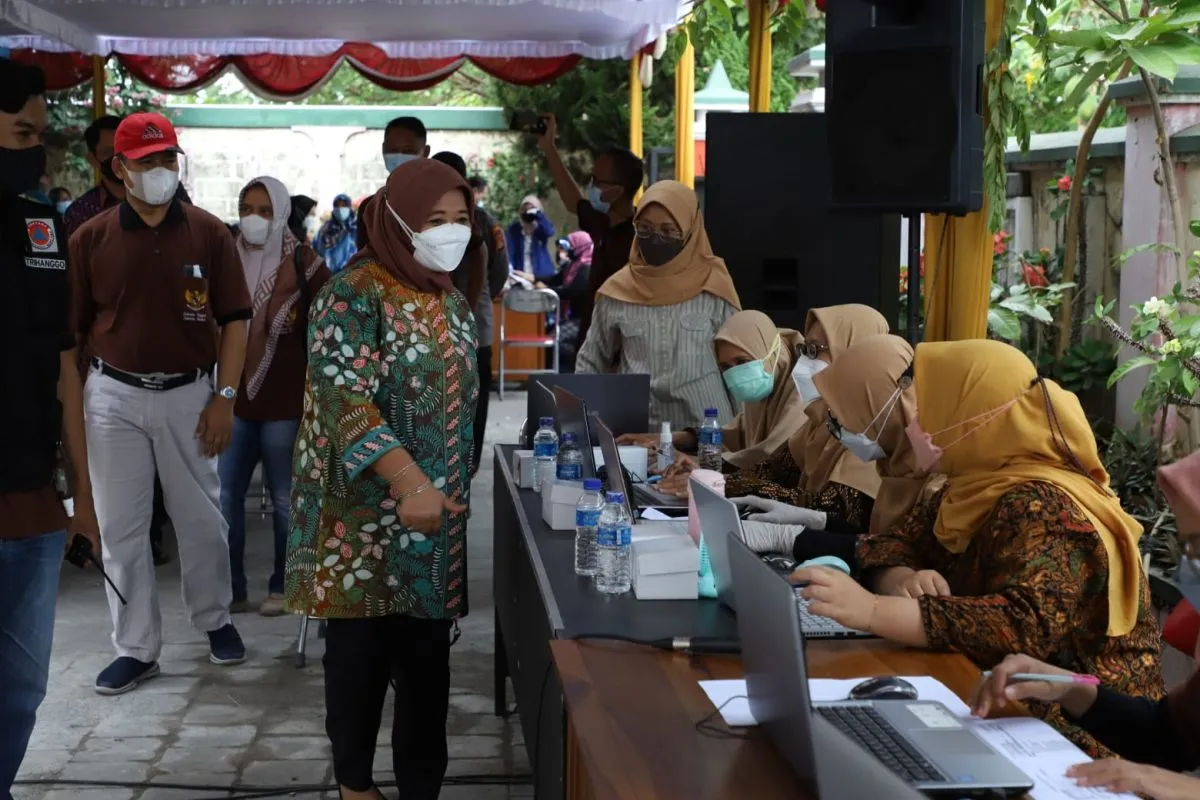Sleman (ANTARA) - Bupati Sleman, Daerah Istimewa Yogyakarta Kustini Sri Purnomo didampingi Wakil Bupati Danang Maharsa melakukan peninjauan penyelenggaraan vaksinasi COVID-19 massal di Kantor Kelurahan Trihanggo, Kapanewon (Kecamatan) Gamping, Sabtu.