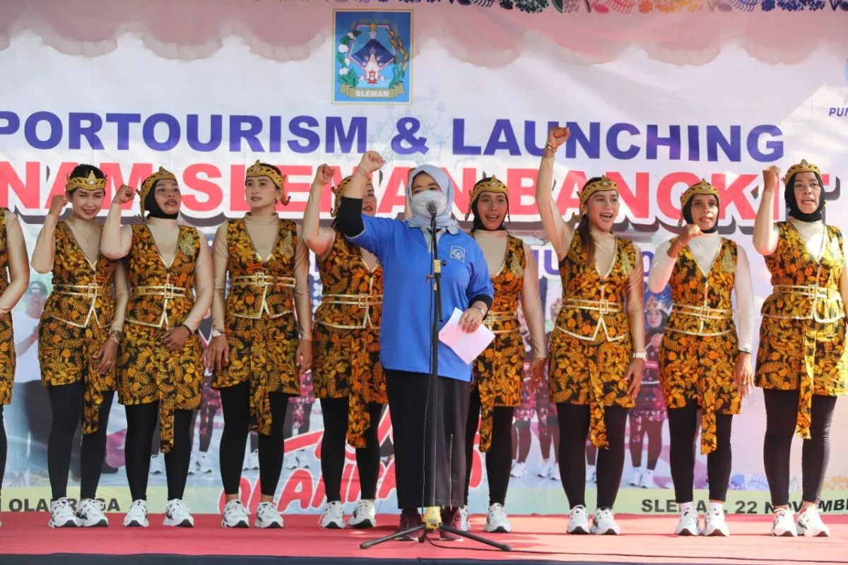 Sleman (ANTARA) - Bupati Sleman, Daerah Istimewa Yogyakarta, Kustini Sri Purnomo meluncurkan Senam Sleman Bangkit sebagai olahraga senam kreasi milik Kabupaten Sleman pada pelaksanaan senam massal di Museum Gunungapi Merapi (MGM), Senin.