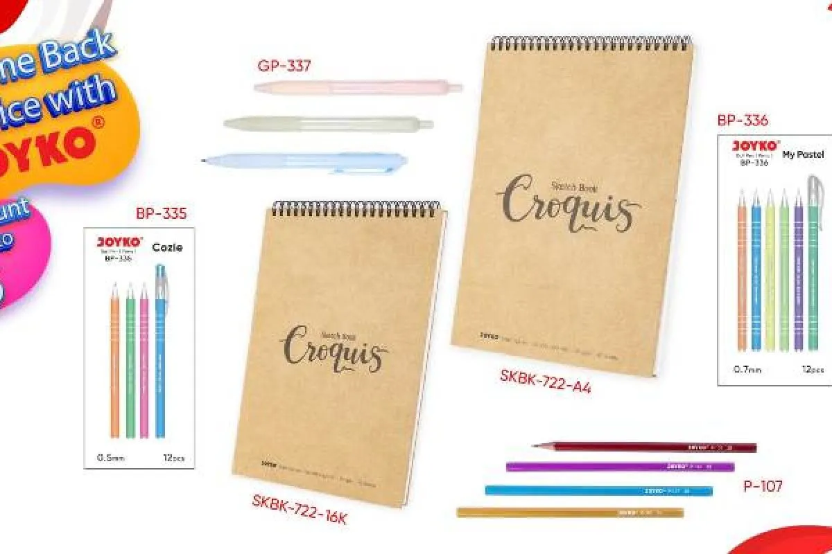 Selain itu, Joyko juga meluncurkan Buku Sketsa Joyko SKBK-722, yang dapat digunakan sebagai catatan kantor, dengan 2 ukuran berbeda, yakni 16K dan A4.