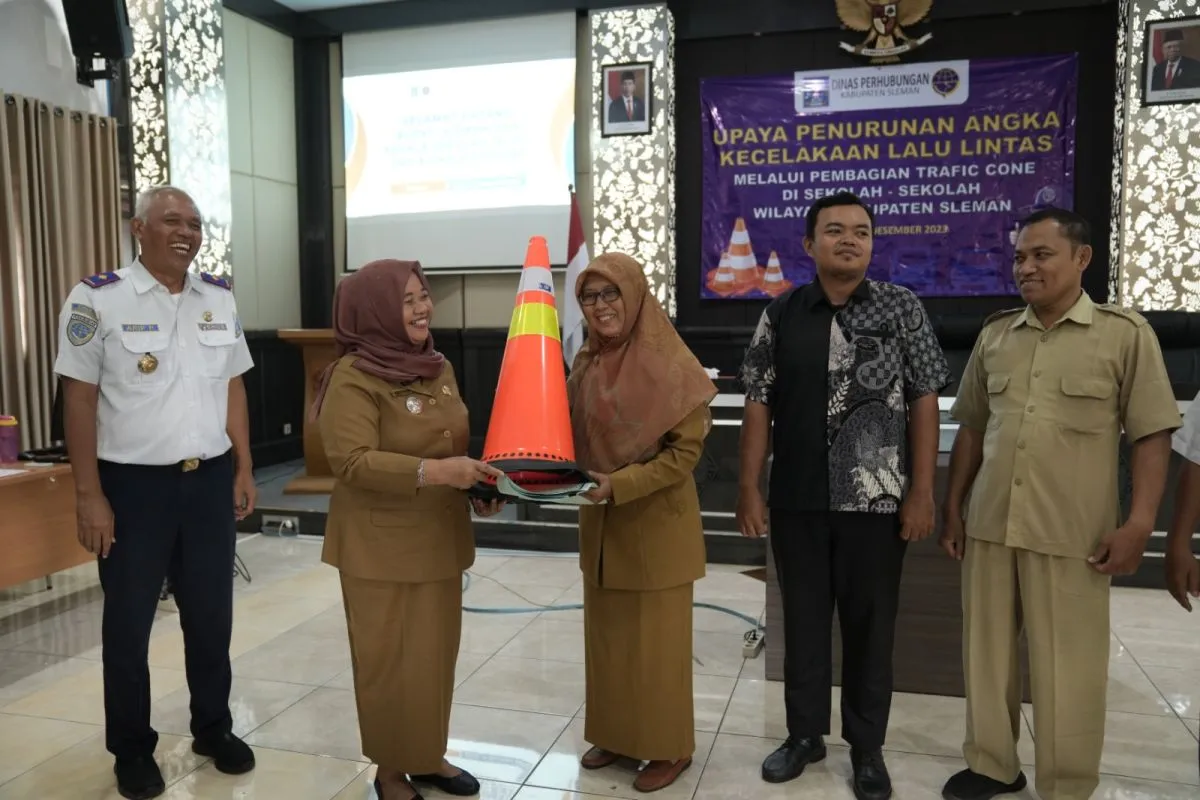 Arip mengatakan, dengan kondisi tersebut, Dinas Perhubungan Sleman membagikan "traffic cone" kepada 72 sekolah.
