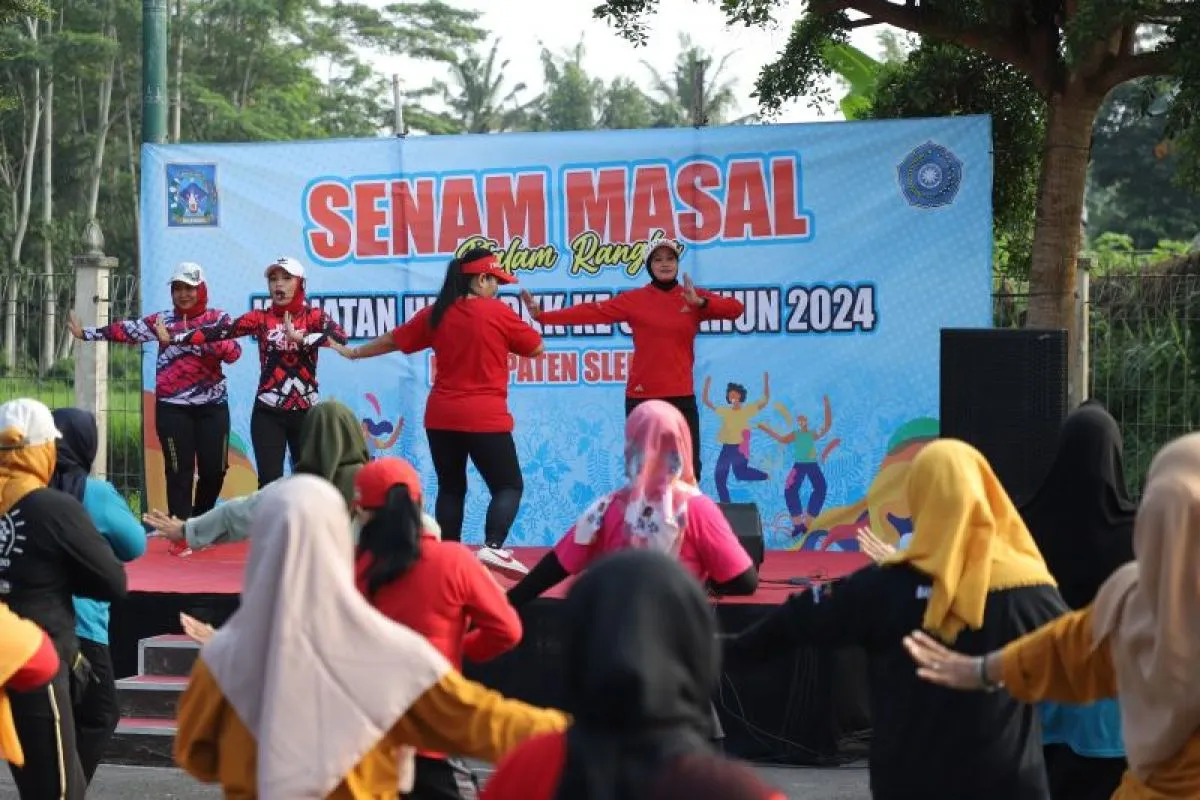 Kustini menyampaikan apresiasinya kepada TP PKK Kabupaten Sleman yang telah menyelenggarakan kegiatan senam massal sebagai rangkaian peringatan HKG PKK ke-52.