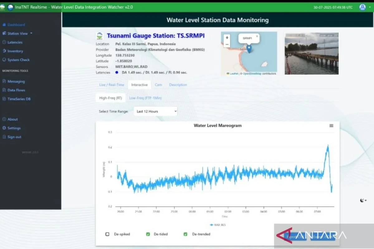 BMKG melaporkan hasil pemantauan tsunami hingga Rabu petang, menunjukkan anomali muka laut di beberapa lokasi, antara lain Jayapura setinggi 20 centimeter, Tapaleo Halmahera Tengah 6 centimeter, Sarmi (Papua) 20 centimeter, Sorong 20 sentimeter, Depapre Jayapura 20 sentimeter, Sausapor (Papua Barat) 20 centimeter, Beo Talaud (Sulawesi Utara) 5 centimeter, dan Daeo Majiko Morotai (Maluku Utara) 8 centimeter, sedangkan di Gorontalo tidak terdeteksi anomali muka laut.