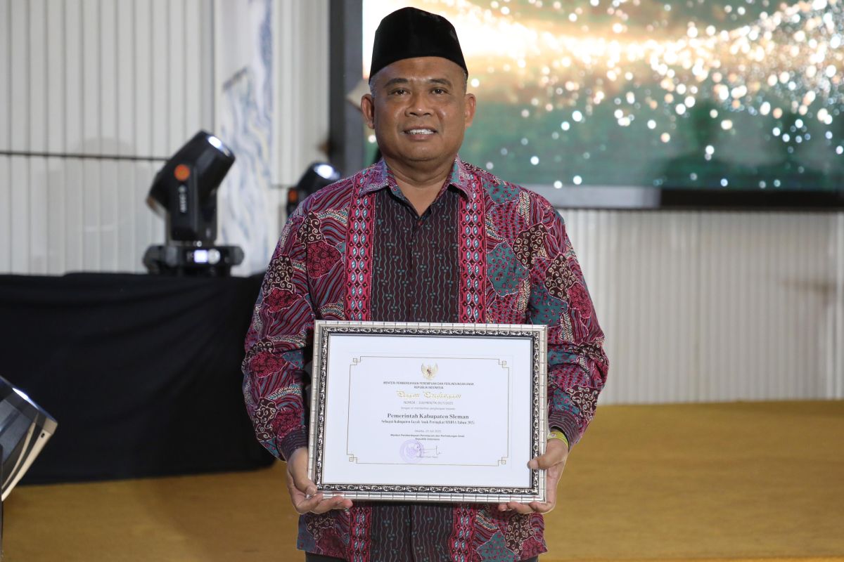 Penghargaan Kabupaten Layak Anak ini diterima Bupati Sleman Harda Kiswaya pada acara Penganugerahan Kabupaten/Kota Layak Anak (KLA) tahun 2025 di Auditorium KH. M. Rasjidi, Kementerian Agama RI Jakarta Pusat, Jumat (8/8).