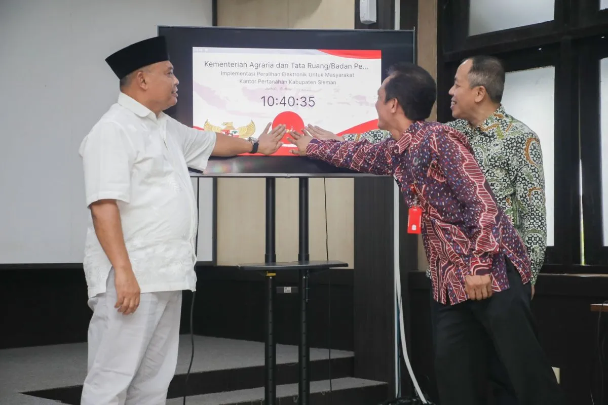 Peluncuran dilakukan secara simbolis oleh Bupati Sleman Harda Kiswaya bersama Kepala Kantor Pertanahan Sleman Imam Nawawi dan Kepala Kantor Wilayah BPN DIY Dony Erwan Brilianto di aula Kantor Pertanahan Kabupaten Sleman, Jumat.