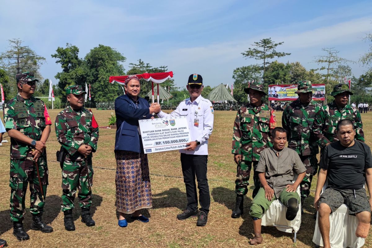 Bank Jateng menyerahkan bantuan kaki palsu kepada 27 penyandang disabilitas di Kabupaten Kudus pada acara pembukaan Program TMMD Reguler ke-125, Rabu, 23 Juli 2025 (ANTARA/HO-Bank jateng)