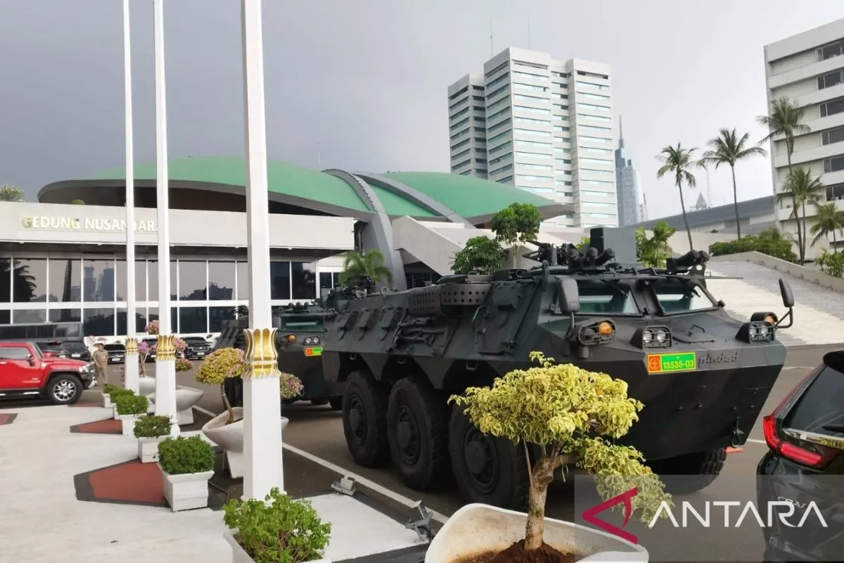 Hingga siang ini saja, beberapa kendaraan taktis (rantis) TNI AD masih bercokol di depan halaman gedung DPR/MPR seperti Anoa dan beberapa kendaraan dinas militer lainnya.