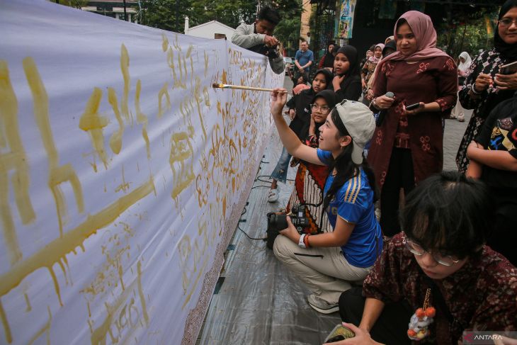 Yogyakarta (ANTARA) - Dinas Kebudayaan DIY bersama Taman Budaya Yogyakarta (TBY) menggelar perayaan Hari Batik Nasional ke-16 melalui kegiatan membatik bersama di atas kain sepanjang 16 meter, Rabu (2/10).