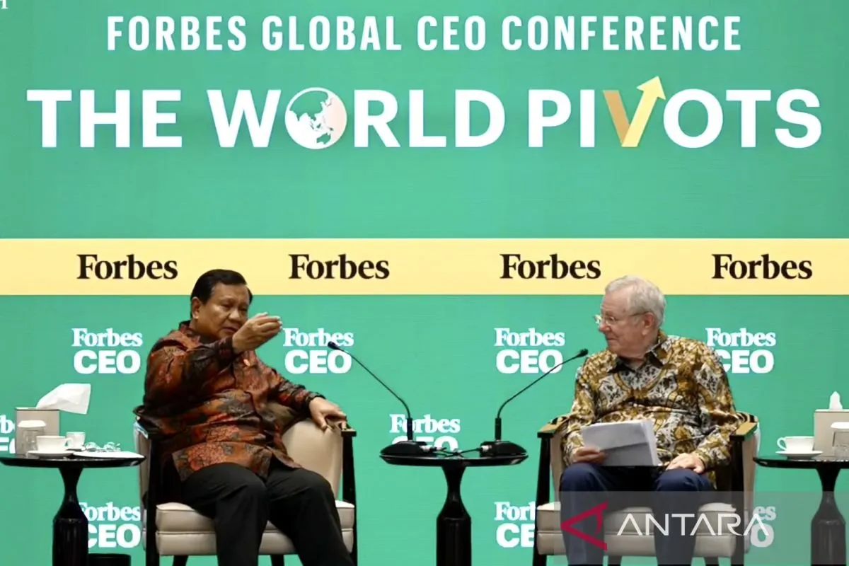 Jakarta (ANTARA) - Presiden Prabowo Subianto saat berbicara dalam sesi puncak Forbes Global CEO Conference 2025 di Jakarta, Rabu malam, mengungkap arah pemikiran ekonominya turut dibentuk oleh pemikiran ayahnya, yang merupakan begawan ekonomi Indonesia, Sumitro Djojohadikusumo.
