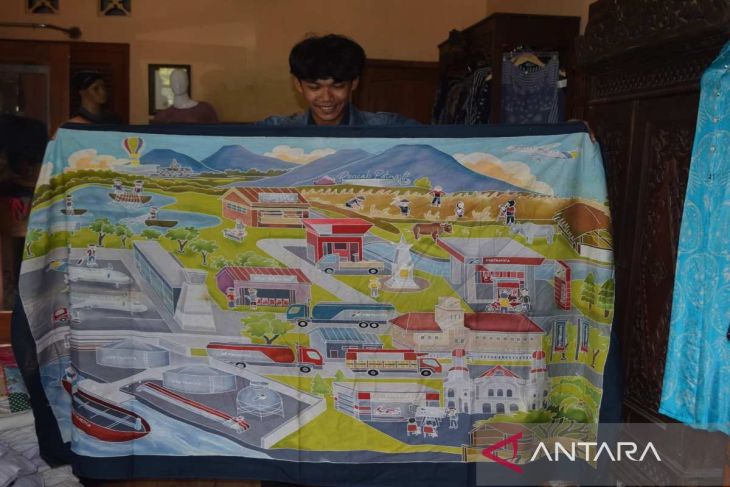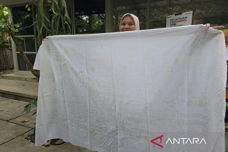 “Nah ini batik Motif Pertamina yang dulu berupa desain awal. Ini sudah jadi dan sudah diwarnai,” kata Vita membuka lipatan kain batik tersebut secara berlahan sampai terbuka sempurna.