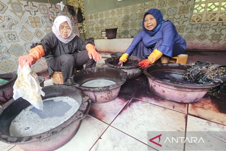 “Dulu saat masih muda, saya bisa membatik sampai jam 12 malam. Setiap luang waktu pasti digunakan membatik, ndak tahu senang rasanya saat membatik. Sekarang seiring usia sudah mulai berkurang waktu membatiknya, apalagi seperti saat ini seharian full ada di sini,” kata Wartinah sembari menyelupkan kain mori putih yang sudah diberi malam, dimasukkan ke ember berisi cairan pewarna.