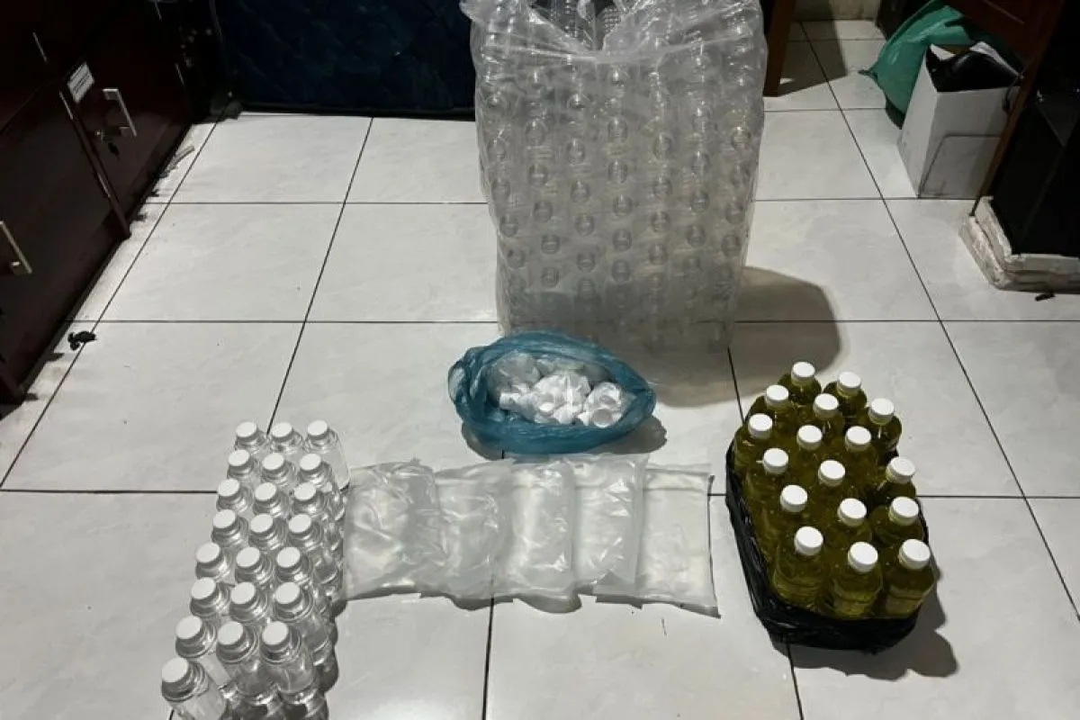 Dia mengatakan, sejumlah barang bukti yang disita di antaranya lima bantalan plastik alkohol murni ukuran satu liter, 22 botol alkohol murni ukuran 250 ml, 17 botol minuman alkohol oplosan ukuran 500 ml, lima dus minuman suplemen sebagai campuran, dan 61 botol kosong beserta tutup yang siap digunakan untuk mengemas oplosan.
